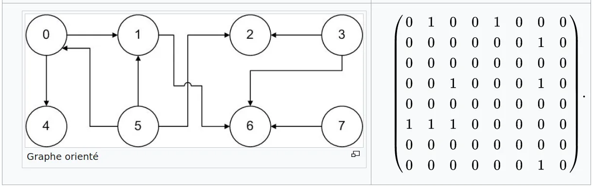 Exemple de Matrice d'adjacence d'un graphe orienté